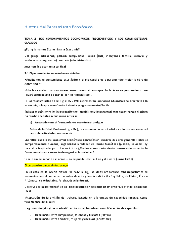 Apuntes 2ndo Parcial Historia del Pensamiento Económico