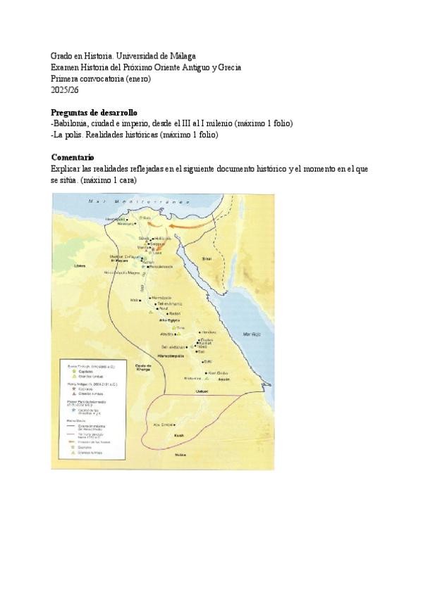 Preguntas del examen de la 1º Ordinaria de Enero de 2025 de Oriente Proximo, Egipto y Grecia. Asignatura de 1º Curso de Historia.