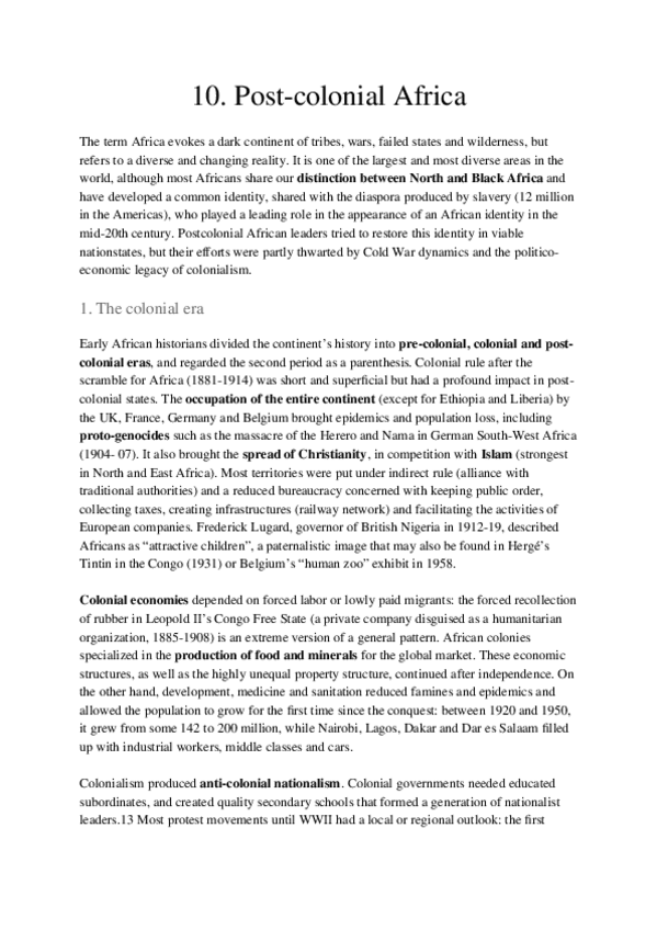 He publicado nuevos apuntes de 2º Historia del siglo XX: 10.-Post-colonial-Africa.docx