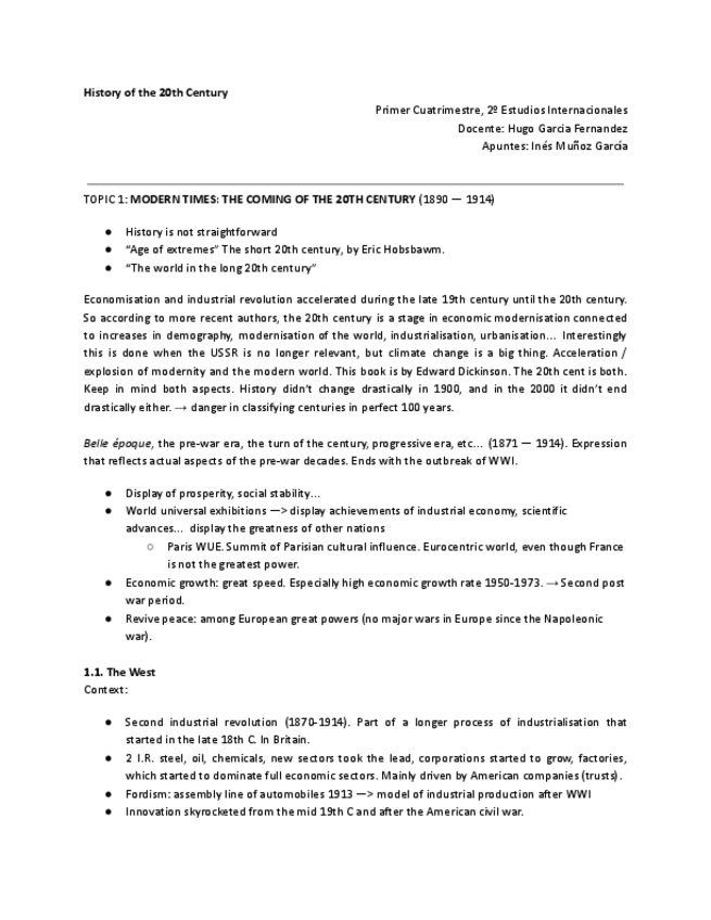 He publicado nuevos apuntes de 2º Historia del siglo XX: 1.Introduction.20th.centuryshortdocx.pdf