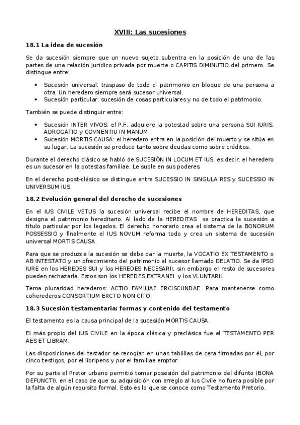 Apuntes completos 2 tema de derecho romano. 1 curso 1 cuatrimestre. profesor Francisco Cuena