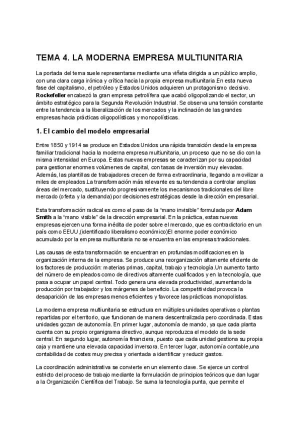 Apuntes Historia Económica Tema 4: El sistema económico capitalista (Siglos XIX-XXI).