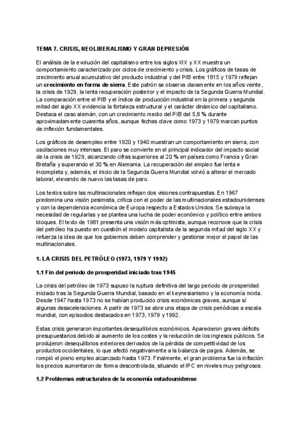 Tema 2 completo: La Gran Depresión de 1929, crisis en la economía mundial
