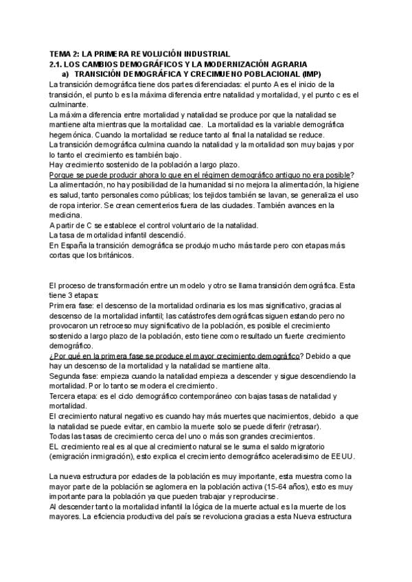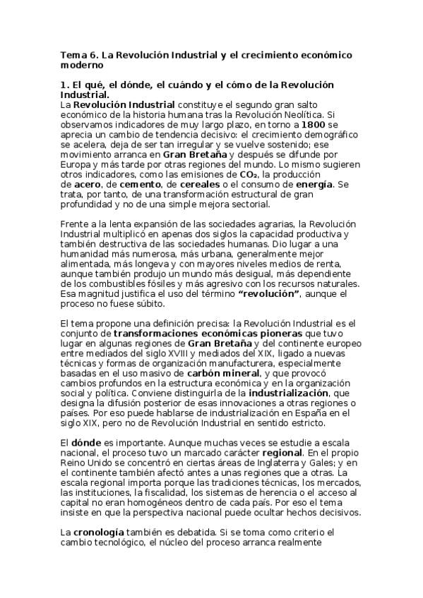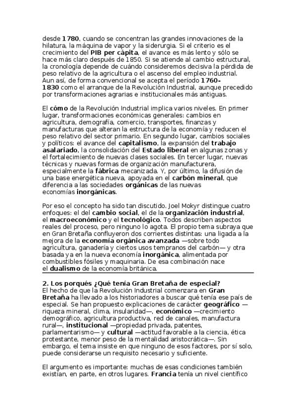 Apuntes del tema 1 de historia económica sobre la revolución industrial en Gran Bretaña.