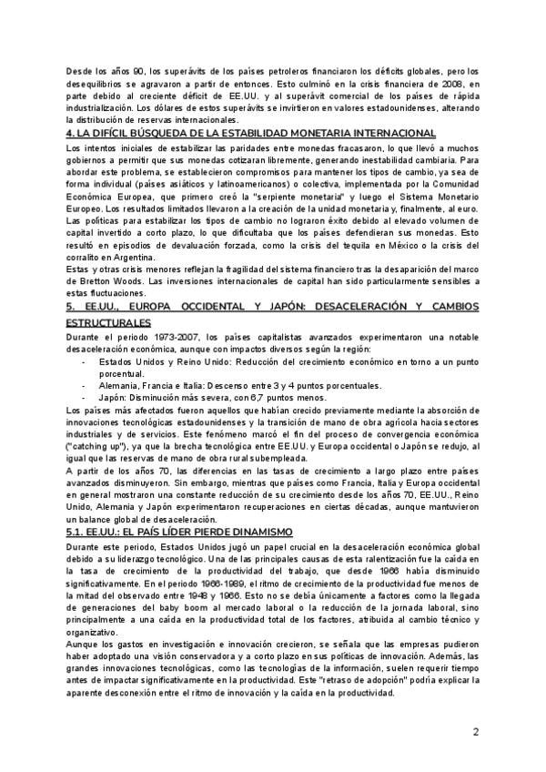 Apuntes resumidos del tema 3 de historia económica sobre la crisis y reestructuración de la economía internacional.