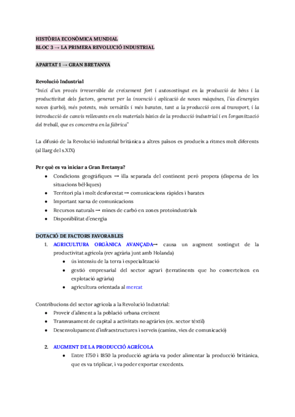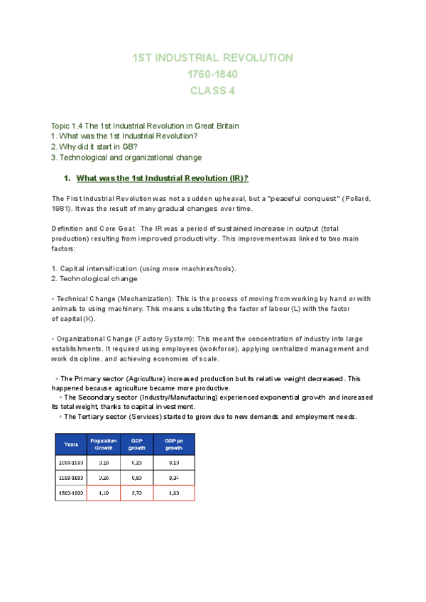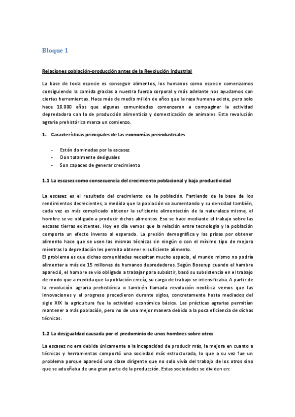 TODO EL TEMARIO BLOQUE 1 HISTORIA INGLÉS "from preindustrial economies to the 20th century"