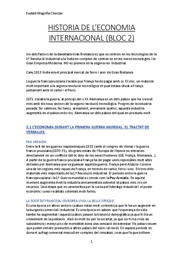 Resums per Blocs - HIstòria Econòmica Internacional