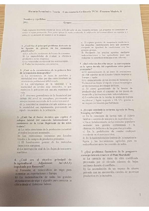 Examen de enero 2026 historia economica modelo A