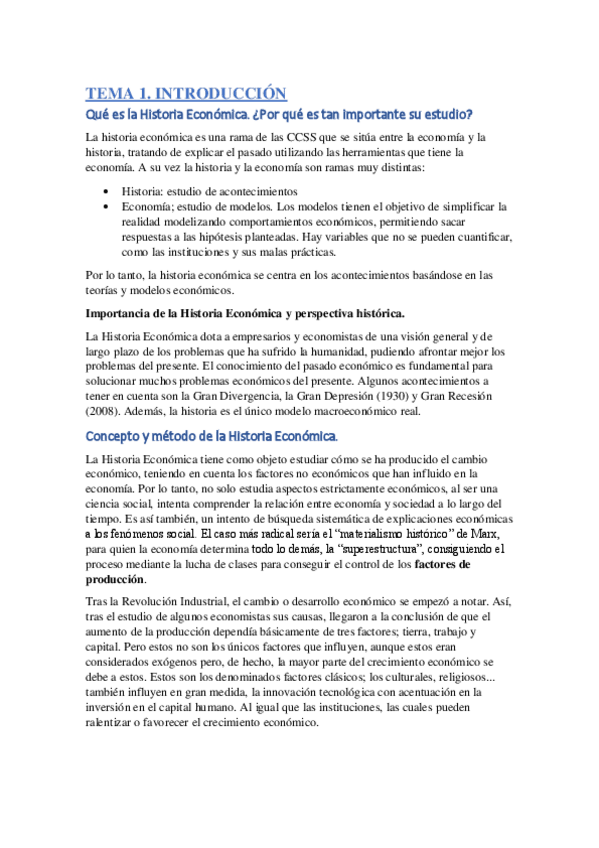 Historia ecnómica apuntes y esquemas