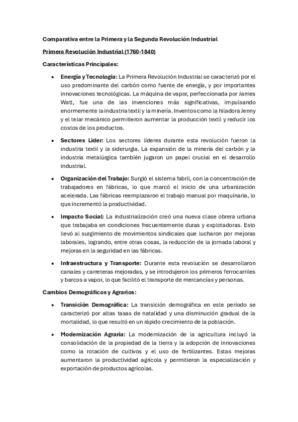 Comparativas revoluciones industriales, posible pregunta de examen de Historia Económica Enero.