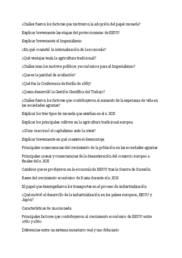 Posible pregunta de Examen Enero de 2024 Historia Económica
