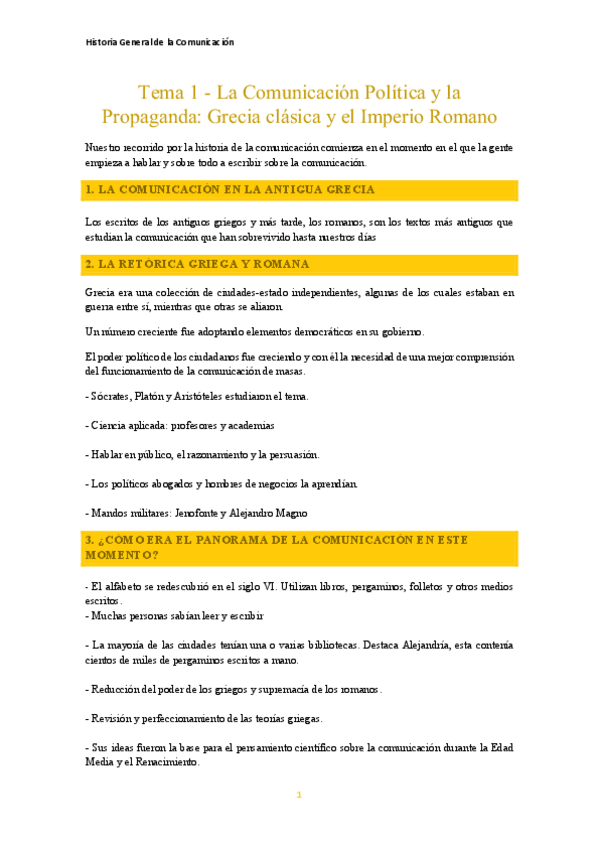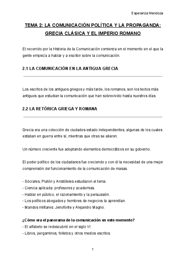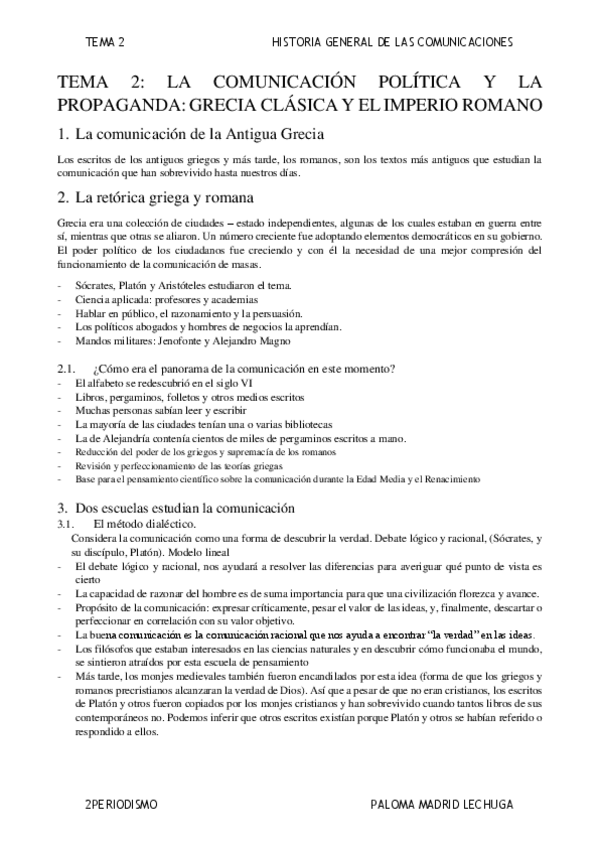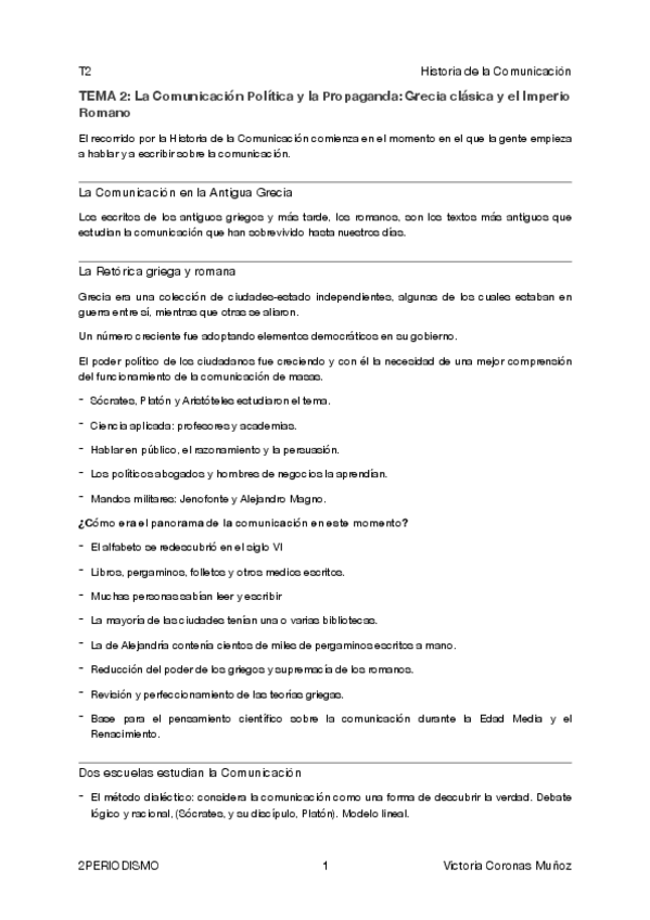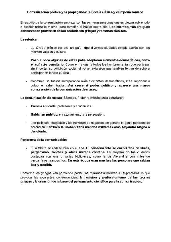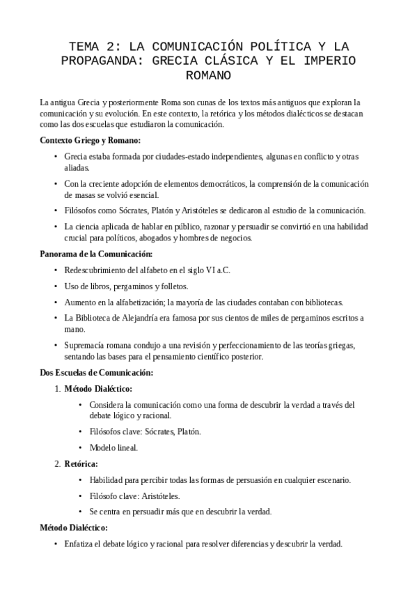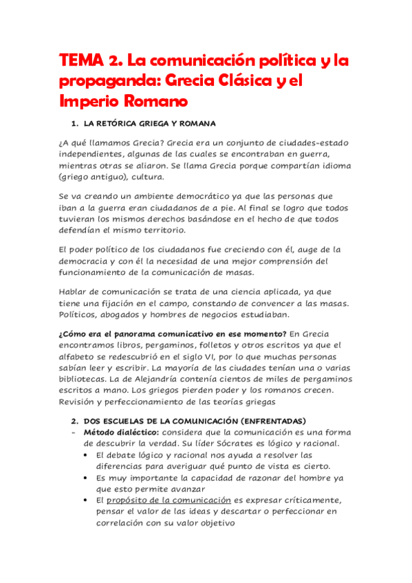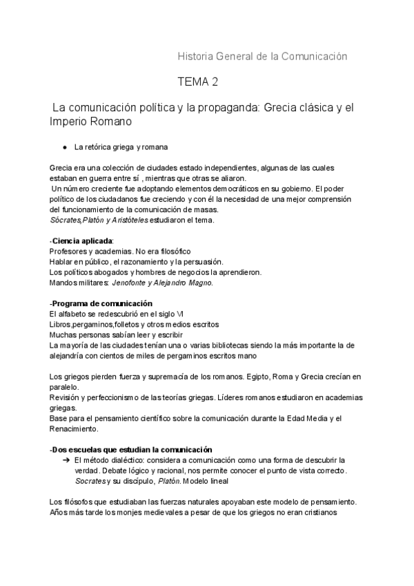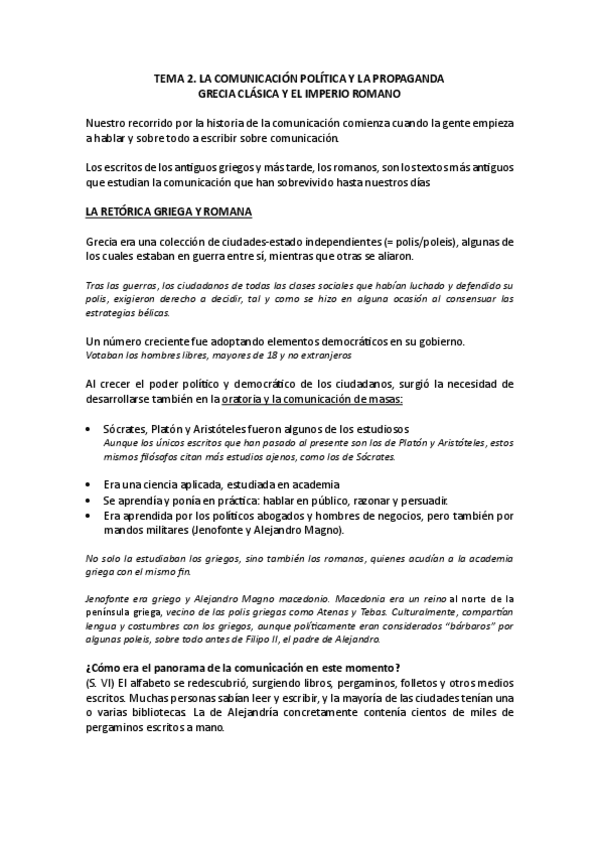 Apuntes del T2 de Historias General de la Comunicación, el tema es: "Comunicación política y la propaganda: la Grecia clásica y el Imperio romano"
