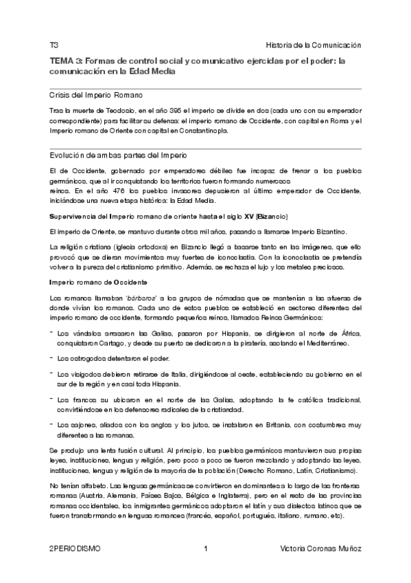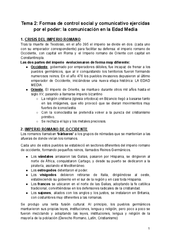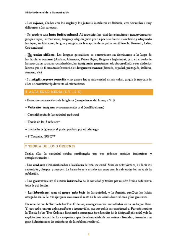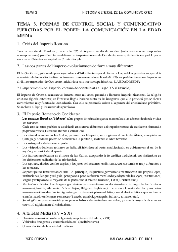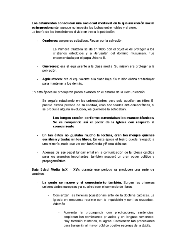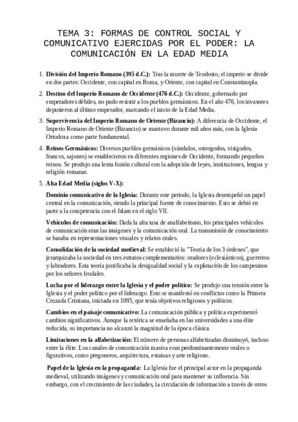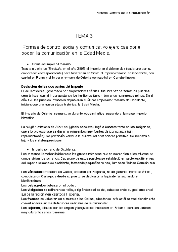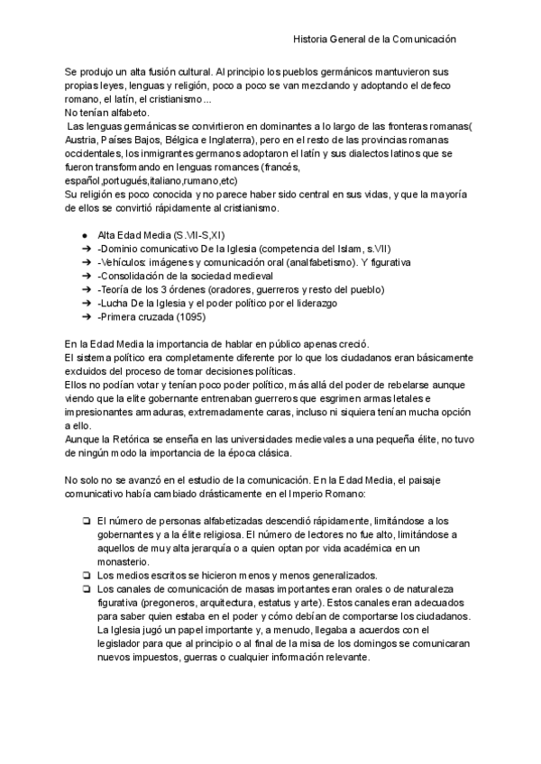 Resumen sobre el tema de la Edad Media de Historia General de la Comunicación