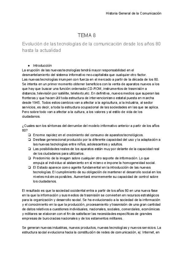 He publicado nuevos apuntes de 2º Historia General de la Comunicación: TEMA 8 Historia General de la Comunicación.pdf