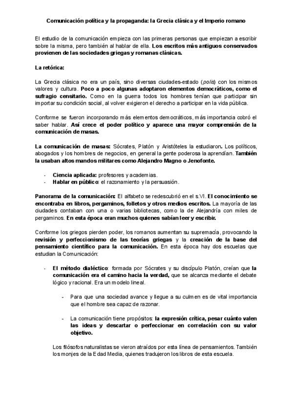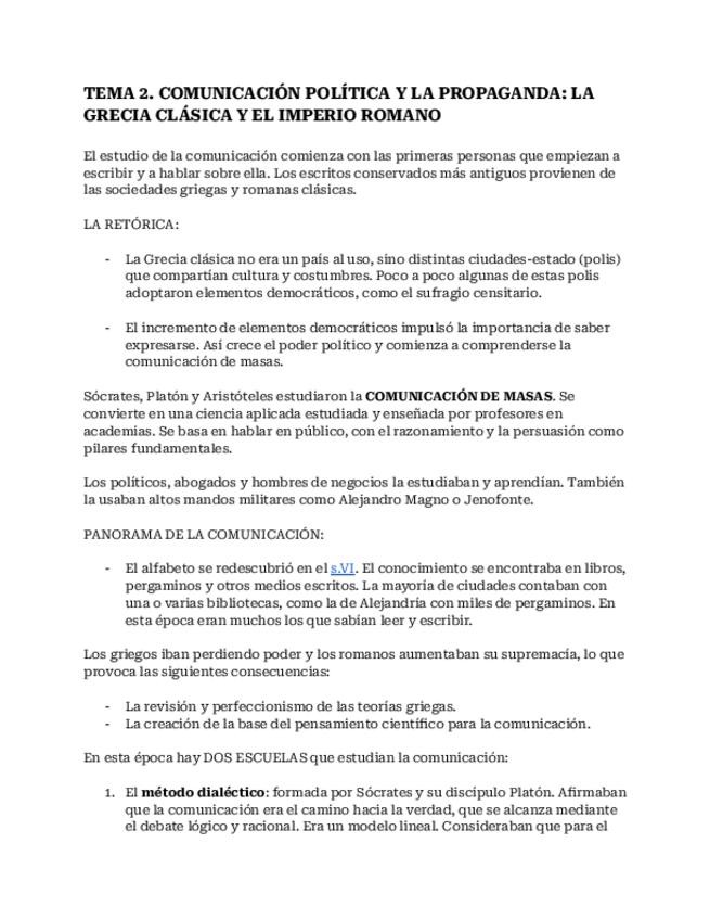 Apuntes del T2 de Historias General de la Comunicación, el tema es: "Comunicación política y la propaganda: la Grecia clásica y el Imperio romano"