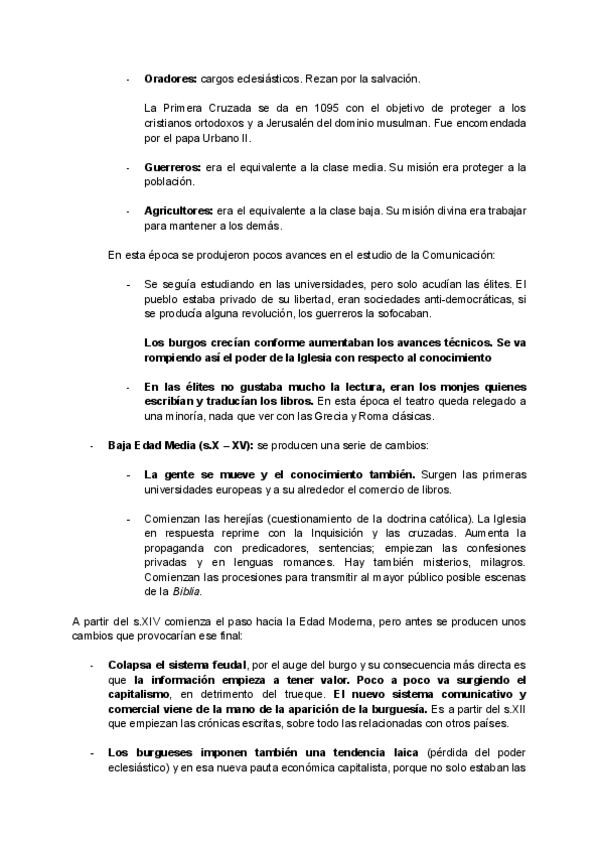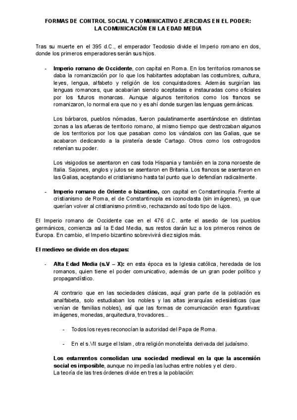 Resumen sobre el tema de la Edad Media de Historia General de la Comunicación