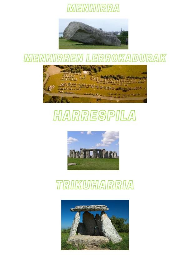 Tema de la prehistoria, centrándose en el arte de los distintos periodos y las construcciones megalíticas