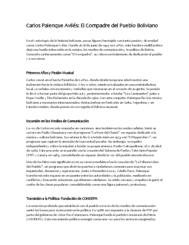 Investigación de la vida de Carlos Palenque Avilés el compadre del pueblo