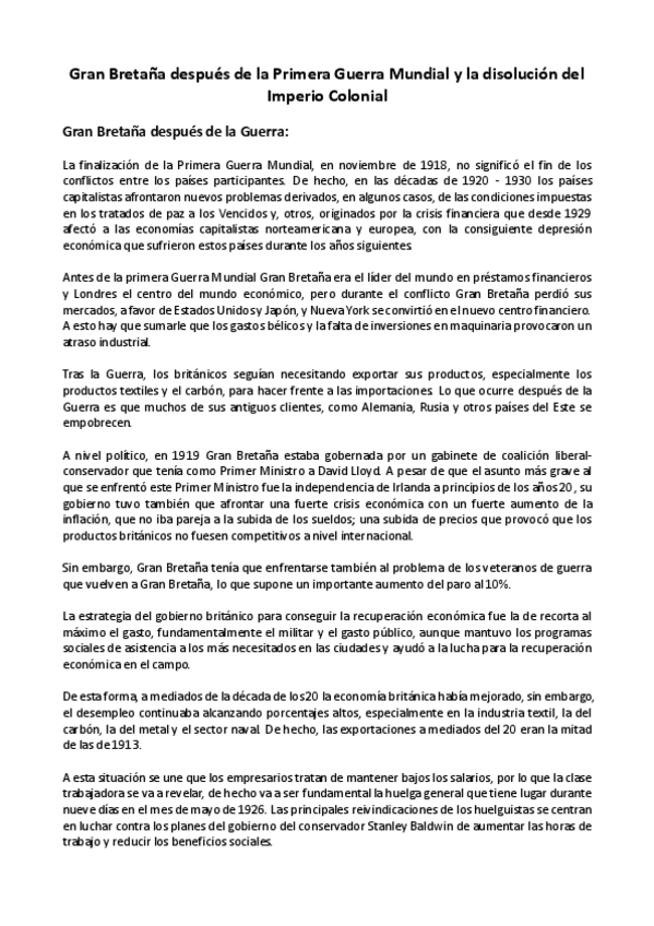 He publicado nuevos apuntes de 1º Historia: Historia de los Países del Primer Idioma: Gran Bretaña después de la IWW.pdf
