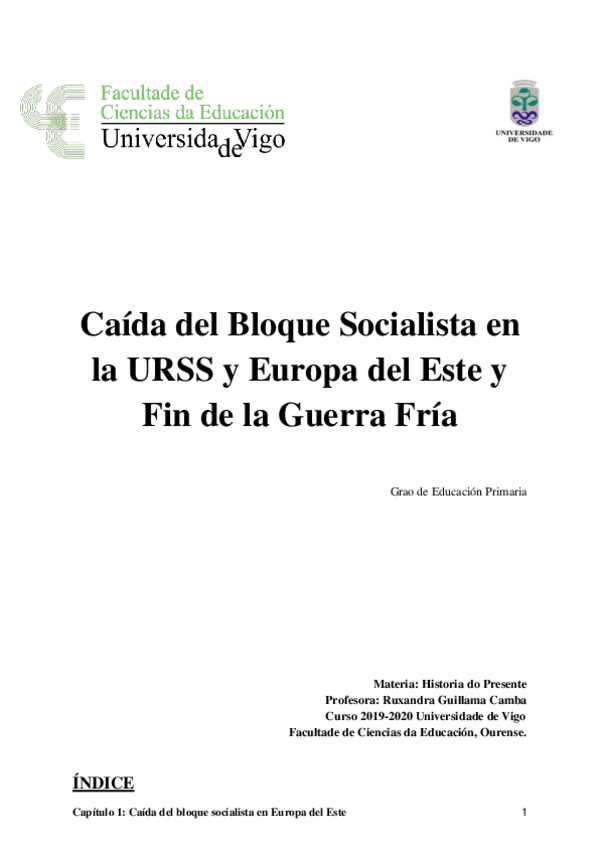 He publicado nuevos apuntes de 1º Historia: Historia del Presente: Caída Bloque Socialista Fin Guerra Fría