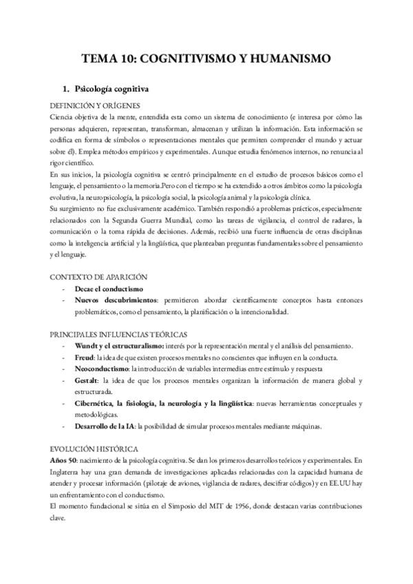 Esquema tema 10: cognitivismo y humanismo. Claro, completo y sencillo con colores.