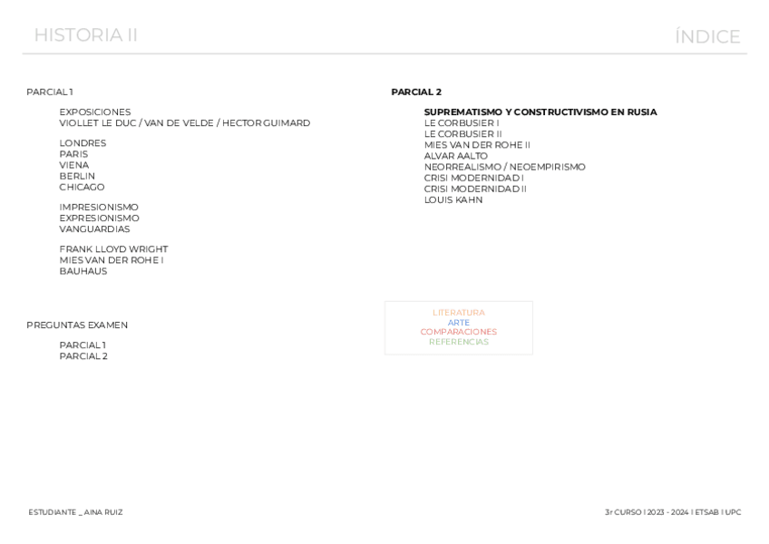 Guía de temas, obras y autores de los apuntes para el 1r parcial de Historia II