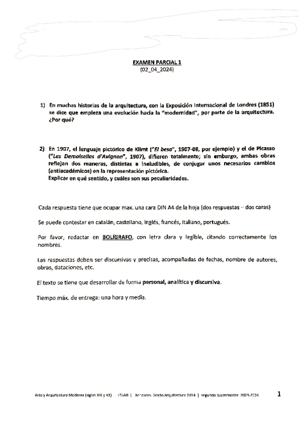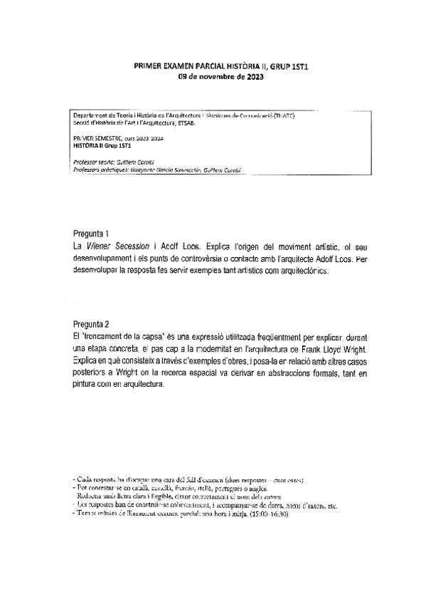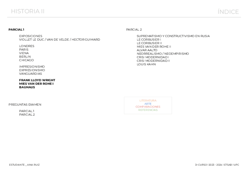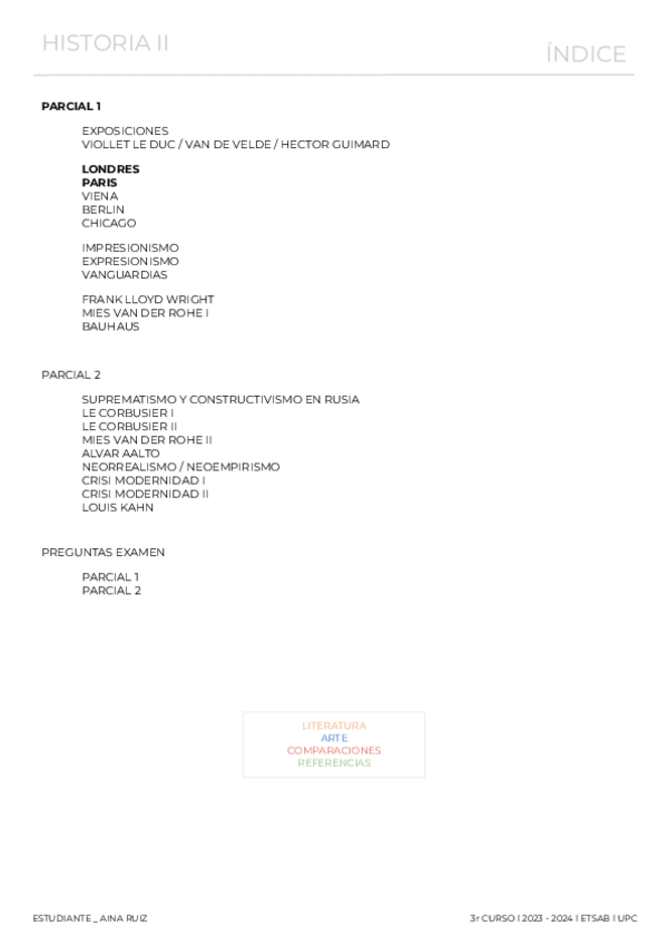 Apuntes para el 1r parcial de Historia II. Estos apuntes no incluyen el tema de las vanguardias (hasta Frank Lloyd Wright). El día martes 4 de noviembre subire el mismo documento actualizado con el último tema de las vanguardias (hasta el surrealismo)