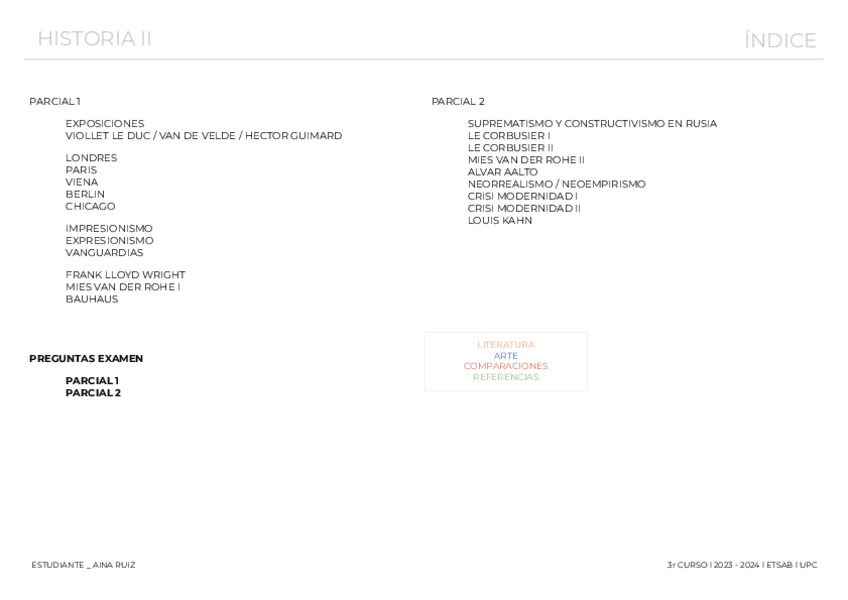 Guía de temas, obras y autores de los apuntes para el 1r parcial de Historia II