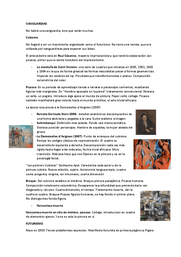 Tema de las vanguardias: cubismo, futurismo y dadaísmo.