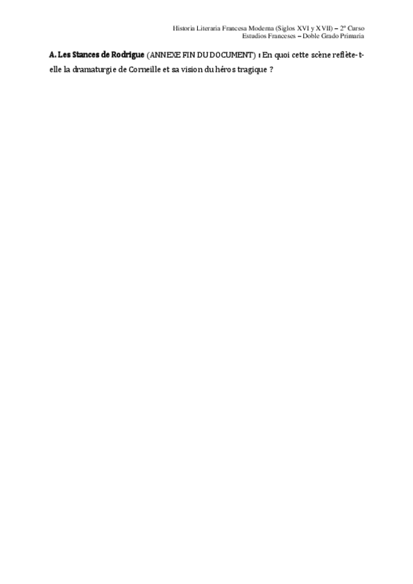 He publicado nuevos examenes de 2º Historia Literaria Francesa Moderna (Siglos XVI y XVII): Stances-de-Rodrigue-Corneille-Commentaire-2-COMMENTAIRE-FINALE.docx