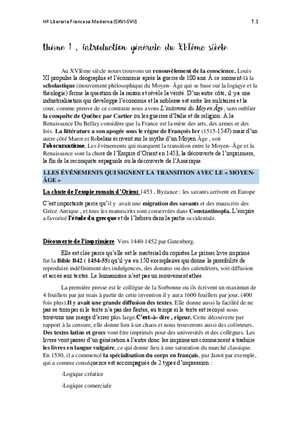 He publicado nuevos apuntes de 2º Historia Literaria Francesa Moderna (Siglos XVI y XVII): Theme-1-XVIe-siecle.pdf