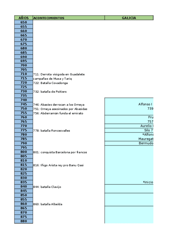 He publicado nuevos apuntes de 3º Historia Medieval de España I: Siglos Viii-Xiii: Cronologia-Reinados-H-Medieval-I.xlsx