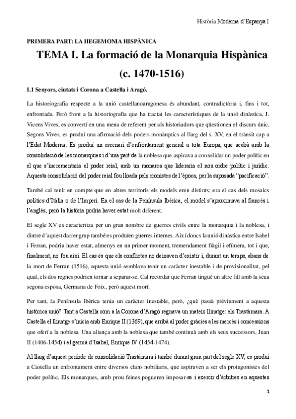 Historia Moderna de España I