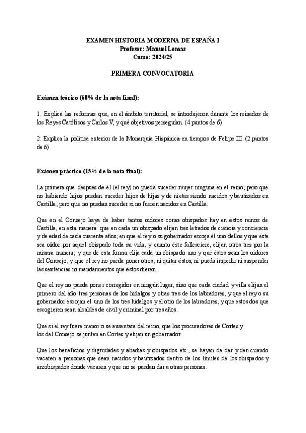 Exámenes Historia Moderna de España I