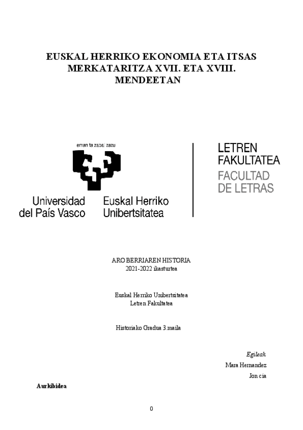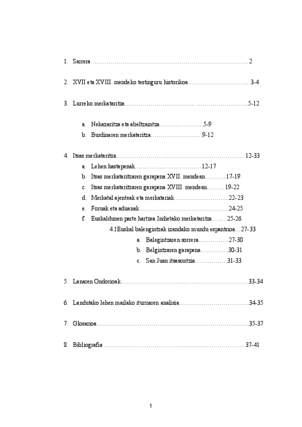 Trabajo en euskera sobre las relaciones economicas y mercantiles en los siglos XVII y XVIII. Con mas de 40 fuentes.