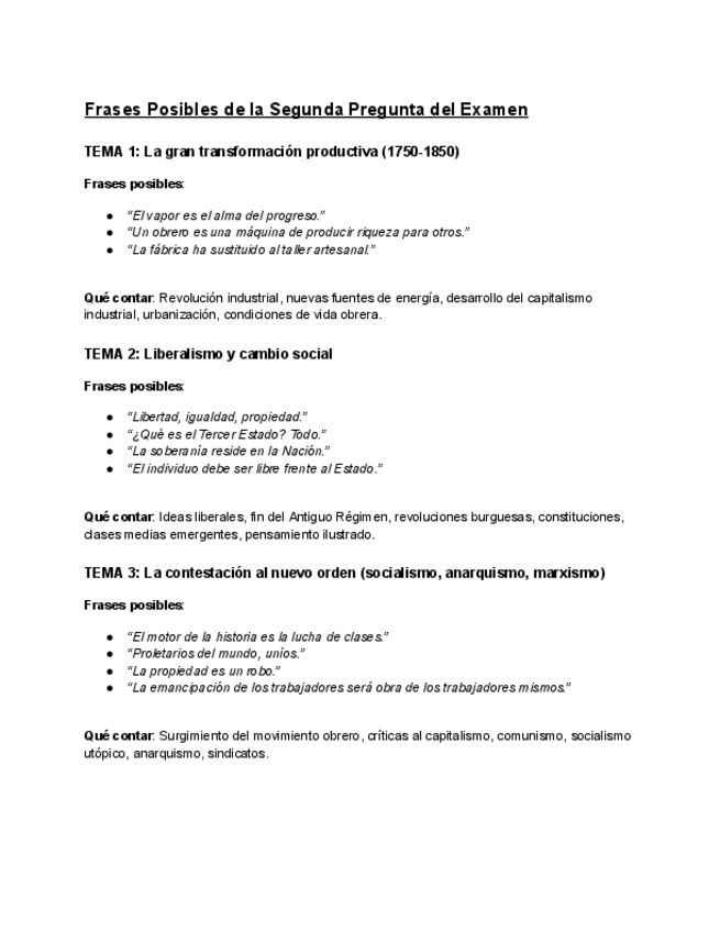 Frases que pueden caer en la pregunta 2 del examen