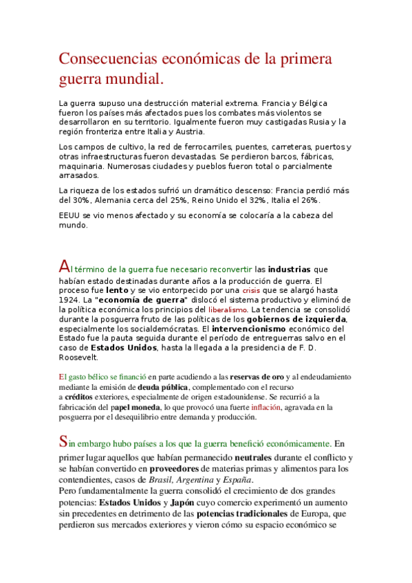 He publicado nuevos apuntes de 1º Historia Política y Social Contemporánea: Consecuencias económicas de la primera guerra mundial.docx