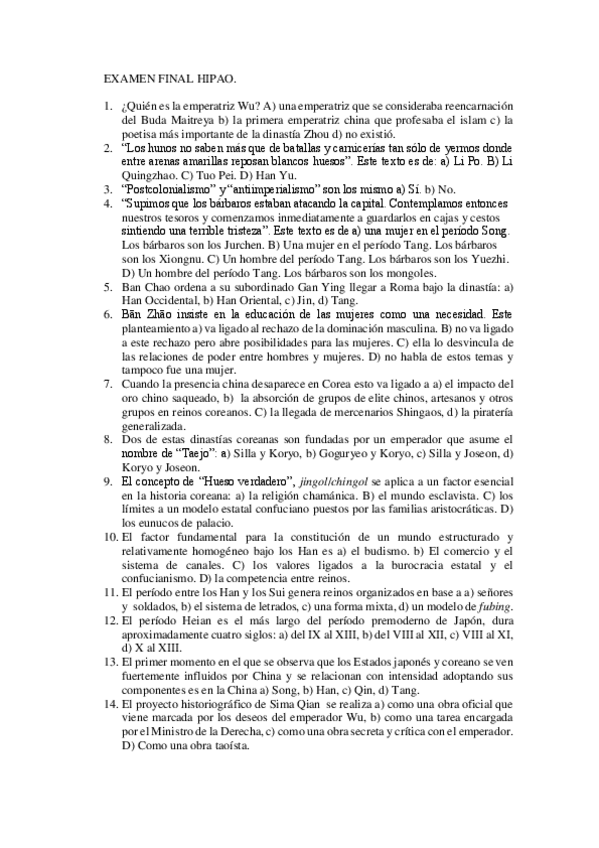 He publicado nuevos examenes de 1º Historia Premoderna de Asia Oriental: Preguntas-Examen-Historia.pdf