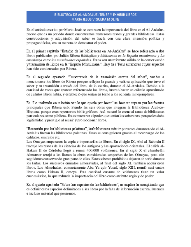 1. La corte de Cadmo. 2. Mujeres q escriben. 3. Escritura y poder. 4. La memoria perdida. 5. Bibioteca de Al-Andalus