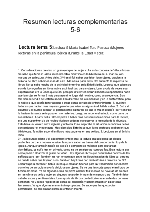 Las lecturas complementarias del segundo examen