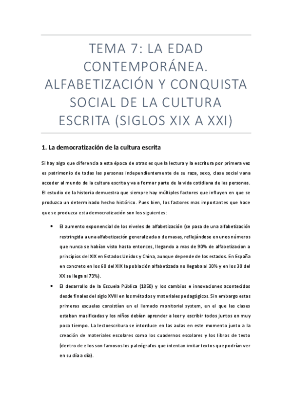 He publicado nuevos apuntes de 1º Historia social de la cultura escrita: Tema-7-Alfabetizacion-y-conquista-social-de-la-cultura-escrita-XIX-XXI.pdf