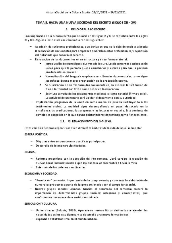 He publicado nuevos apuntes de 1º Historia social de la cultura escrita: Tema-5.pdf