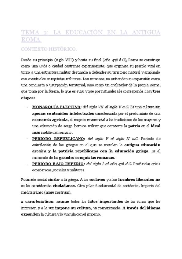 He publicado nuevos apuntes de 1º Historia social de la Educación: Apuntes-T2-ROMA.pdf