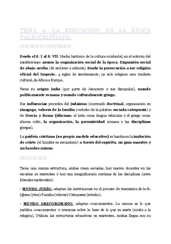 He publicado nuevos apuntes de 1º Historia social de la Educación: T.4-Paideia-cristiana.pdf
