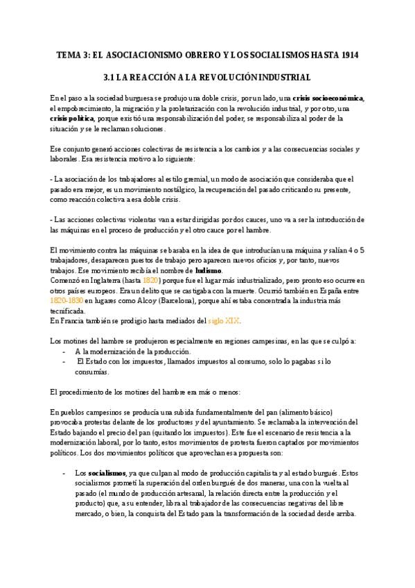 Apuntes desarrollados para el examen del tema 3 de Historia Social y de las Relaciones Laborales