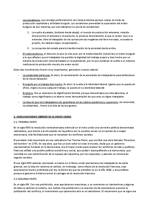 Apuntes desarrollados para el examen del tema 2 de Historia Social y de las Relaciones Laborales
