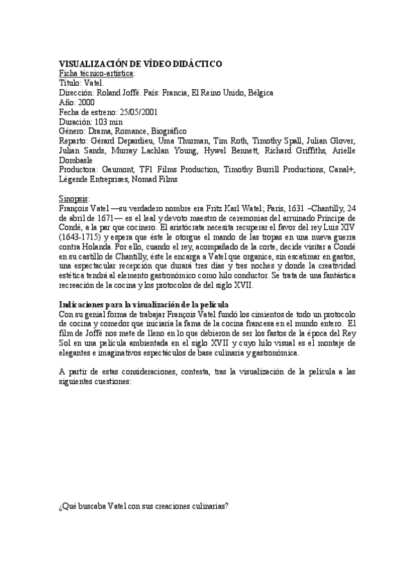 He publicado nuevos practicas de 1º HISTORIA Y FUNDAMENTOS DE LA GASTRONOMÍA: PRACTICA-VATEL-PELICULA.pdf