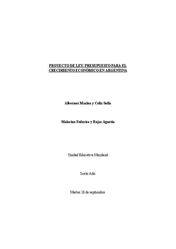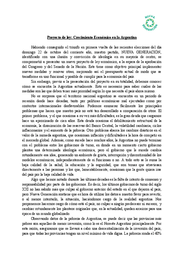 Proyecto planteado por los profesores para simular un plan de mejora y reconstrucción de la Argentina