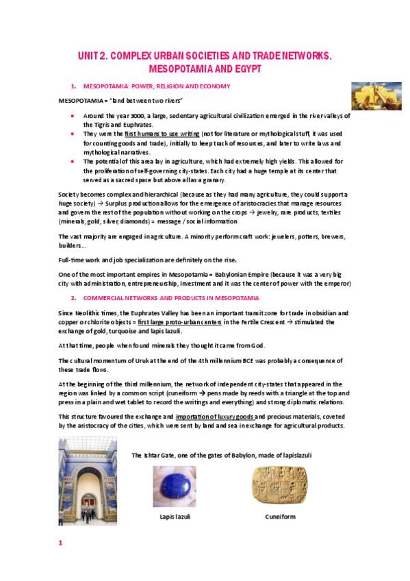 He publicado nuevos apuntes de 1º History of the Commercial Culture and Society: Unit-2.-Complex-urban-societies-and-trade-networks.-Mesopotamia-and-Egypt.pdf