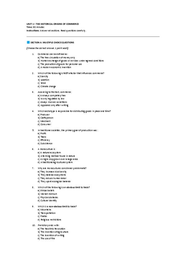 He publicado nuevos apuntes de 1º History of the Commercial Culture and Society: Tests to Review Unit 1